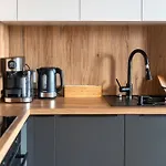 Das Apartment verfügt über eine komplette Küche mit einem Wasserkocher, einem Kühlschrank und Küchenutensilien sowie über Ausstattung zur Kaffee- & Teezubereitung. Dieses 43 m^2 große Apartment ist ganz in der Nähe von der nächstgelegenen Bushaltestelle Zlocieniowa 01.